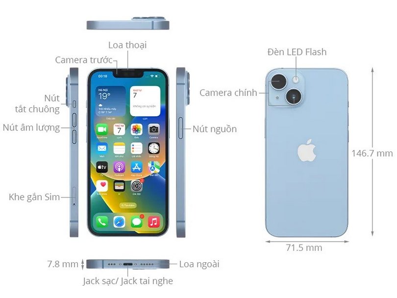 Thông số kỹ thuật iPhone 14 128GB, 256GB Cũ Đẹp 99% - Không Zin Tặng Máy