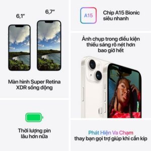 Với kích thước màn hình 6.1 inch đem đến không gian tương đối rộng rãi để bạn có thể nhìn văn bản, hình ảnh. Nếu bạn đang cần một thiết bị có không gian hiển thị lớn hơn thì có thể tham khảo phiên bản iPhone 14 Plus 128GB có kích thước màn hình 6.7 inch.
